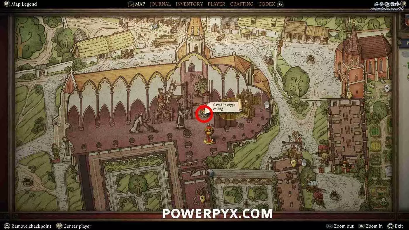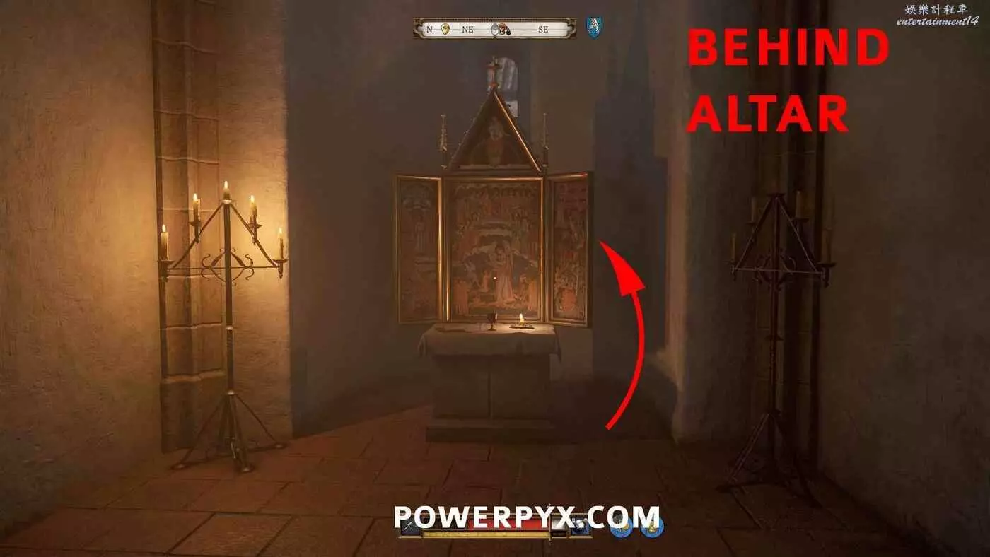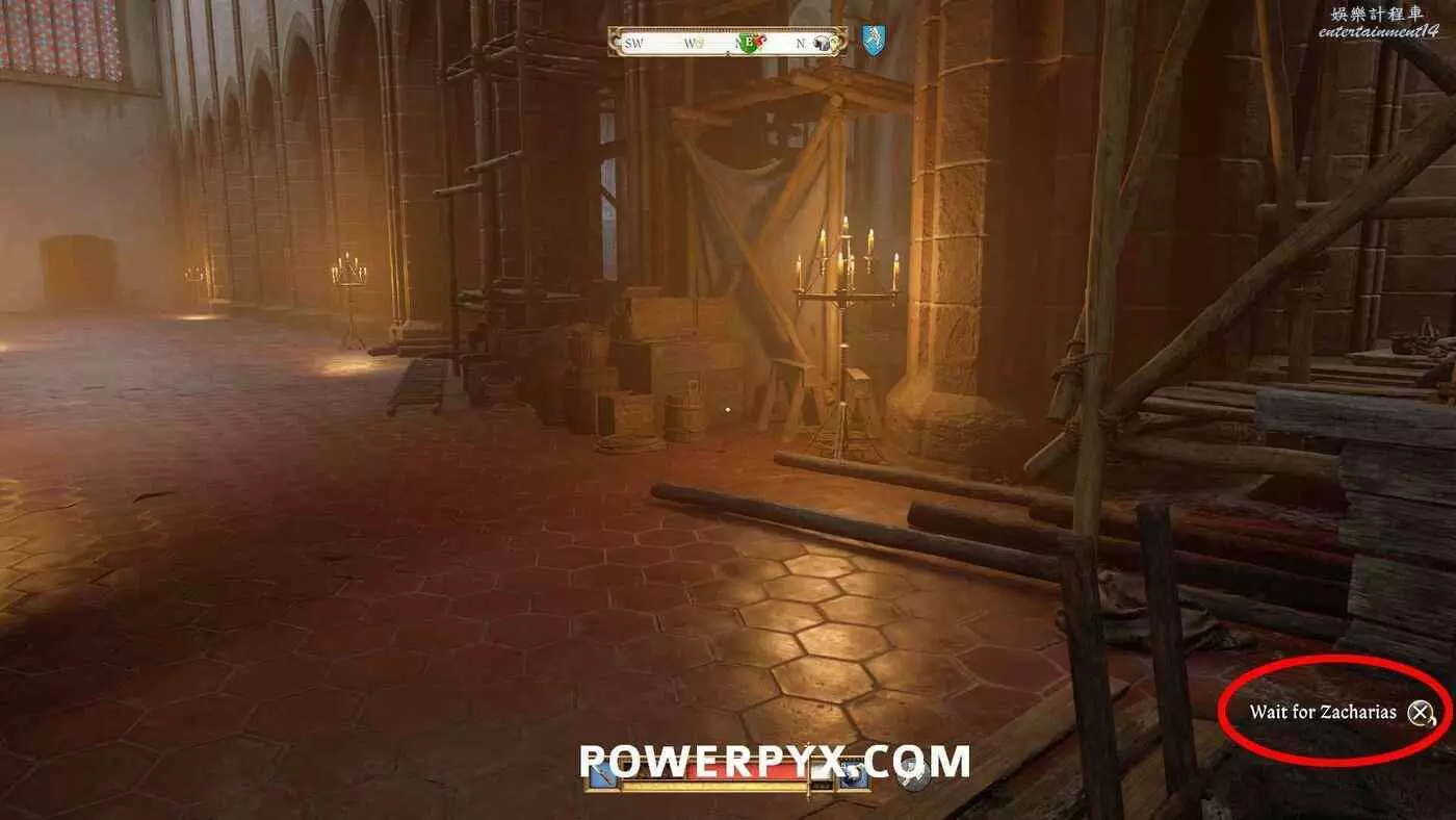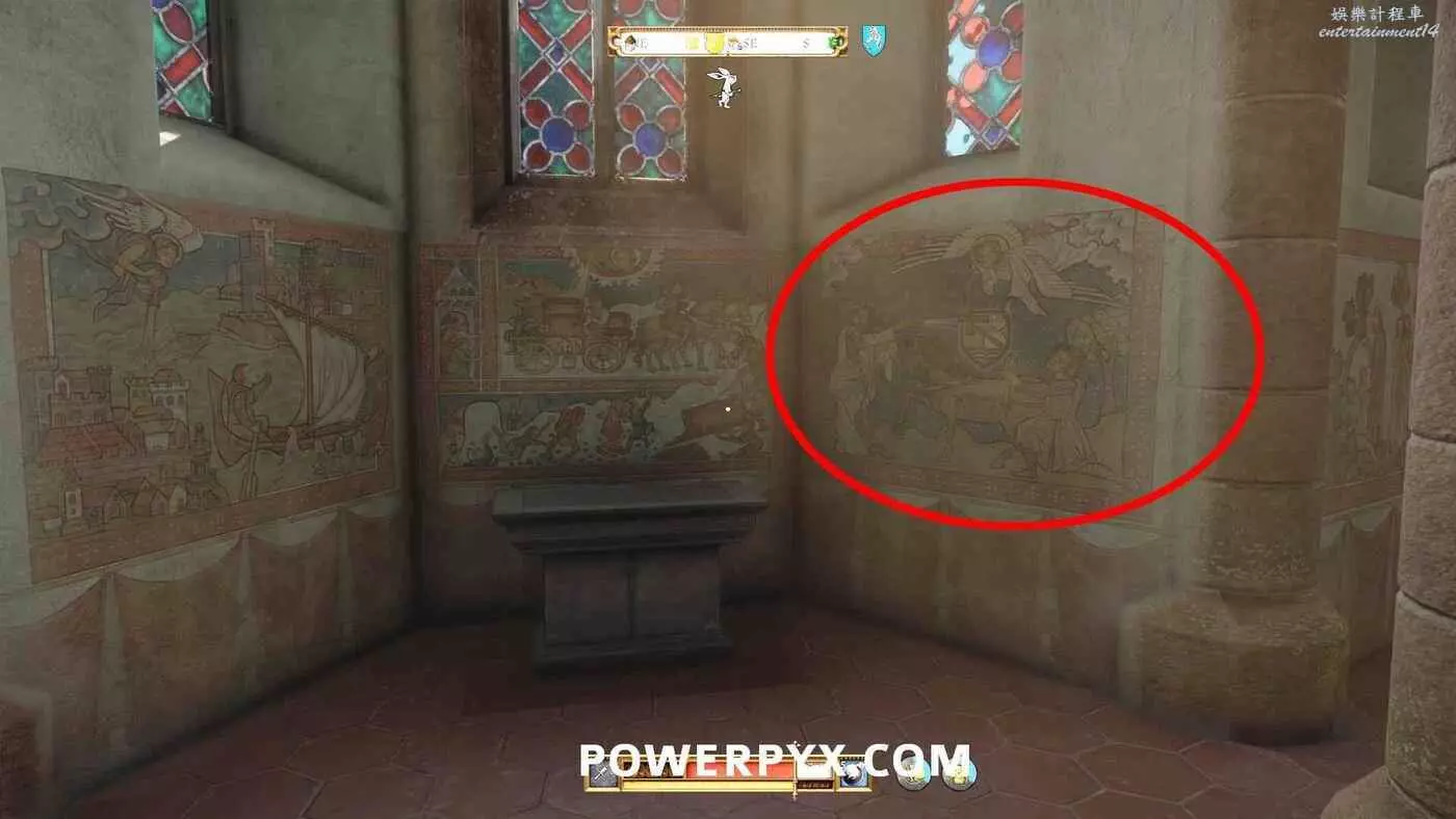 做好所有準備後,前往教堂內地上的洞,並使用按下介面右下角的提示按鍵,觸發過場動畫。
