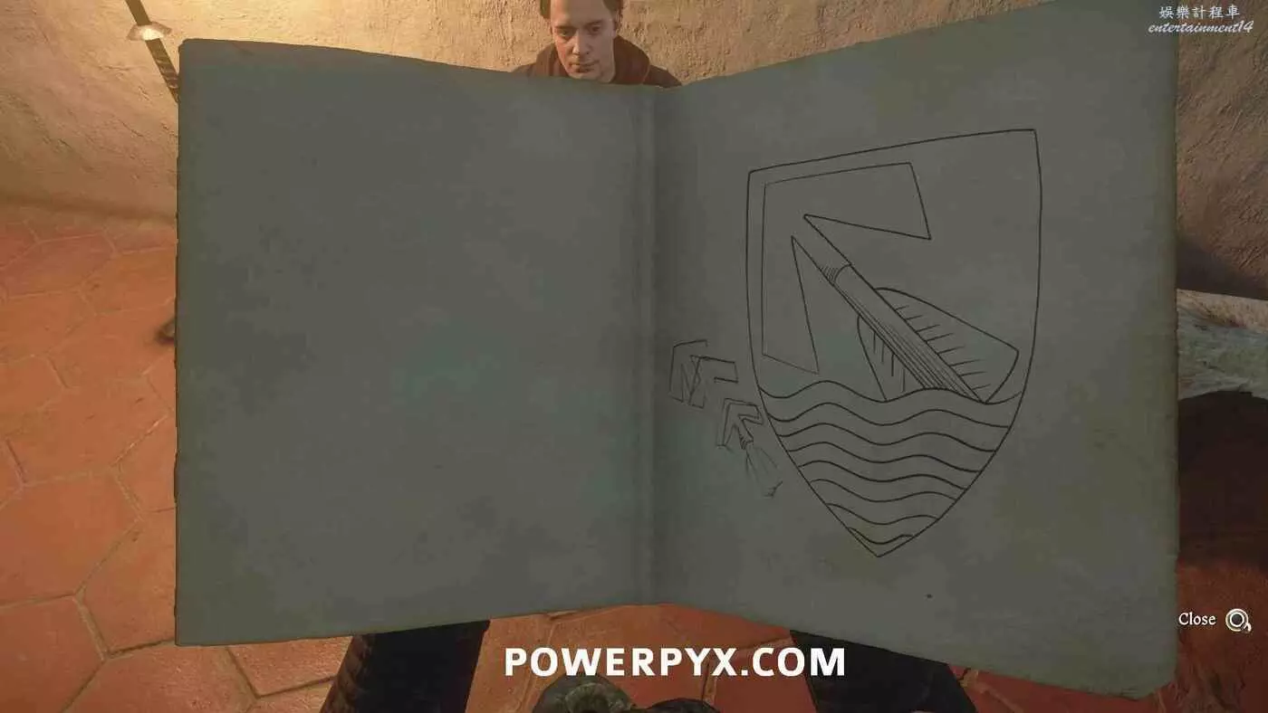 走出圖書館的門立刻右轉上樓梯,在頂層跟隨目標指引前進進入雅羅斯洛夫的房間並搜查房間內的箱子,獲得【舊地窖平面圖】。