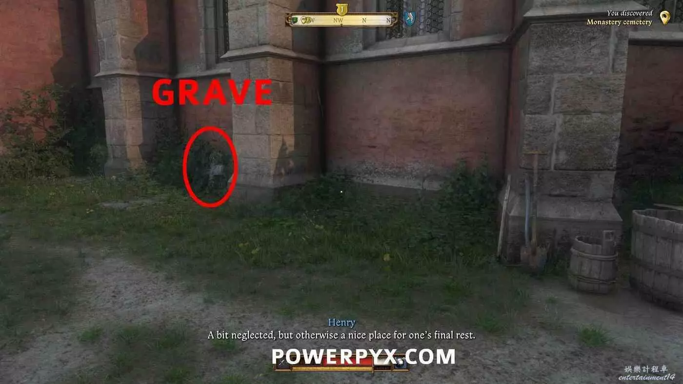 跳入教堂地上的洞,跑過側面的隧道(墓穴右側)。然後穿過地窖,這裡只有一條通路,其他路都被堵住了。在地窖途中會觸發另一場戰鬥。走出地窖後,會觸發一段過場動畫,亨利與撒伽利亞對峙。