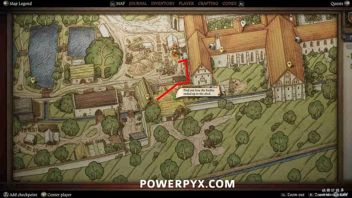 需要再次檢查一些線索,目標標記可能會消失,但線索基本都沿著通往草藥師小屋的排水渠分佈: