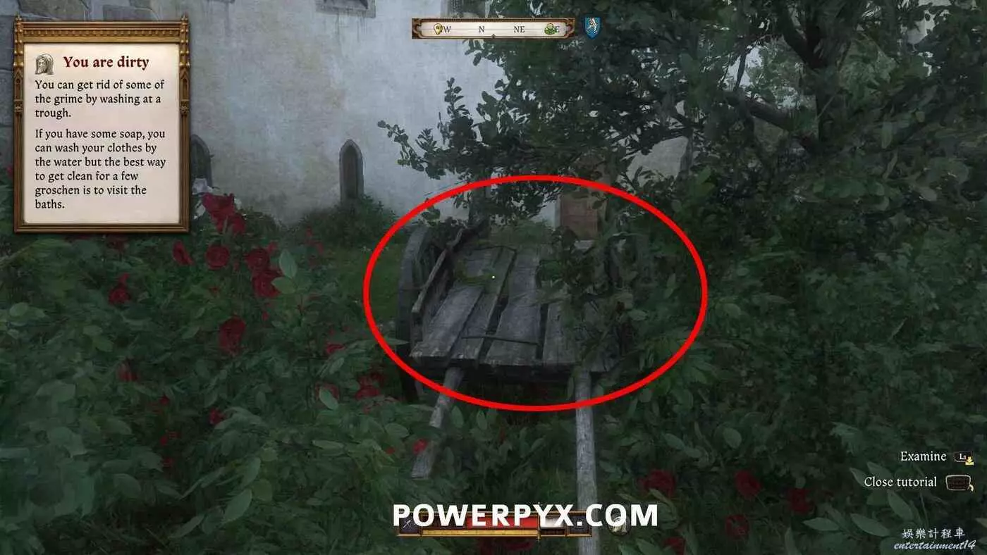 線索3-走過排汙去,從左邊爬出去檢查靠近玫瑰叢的推車