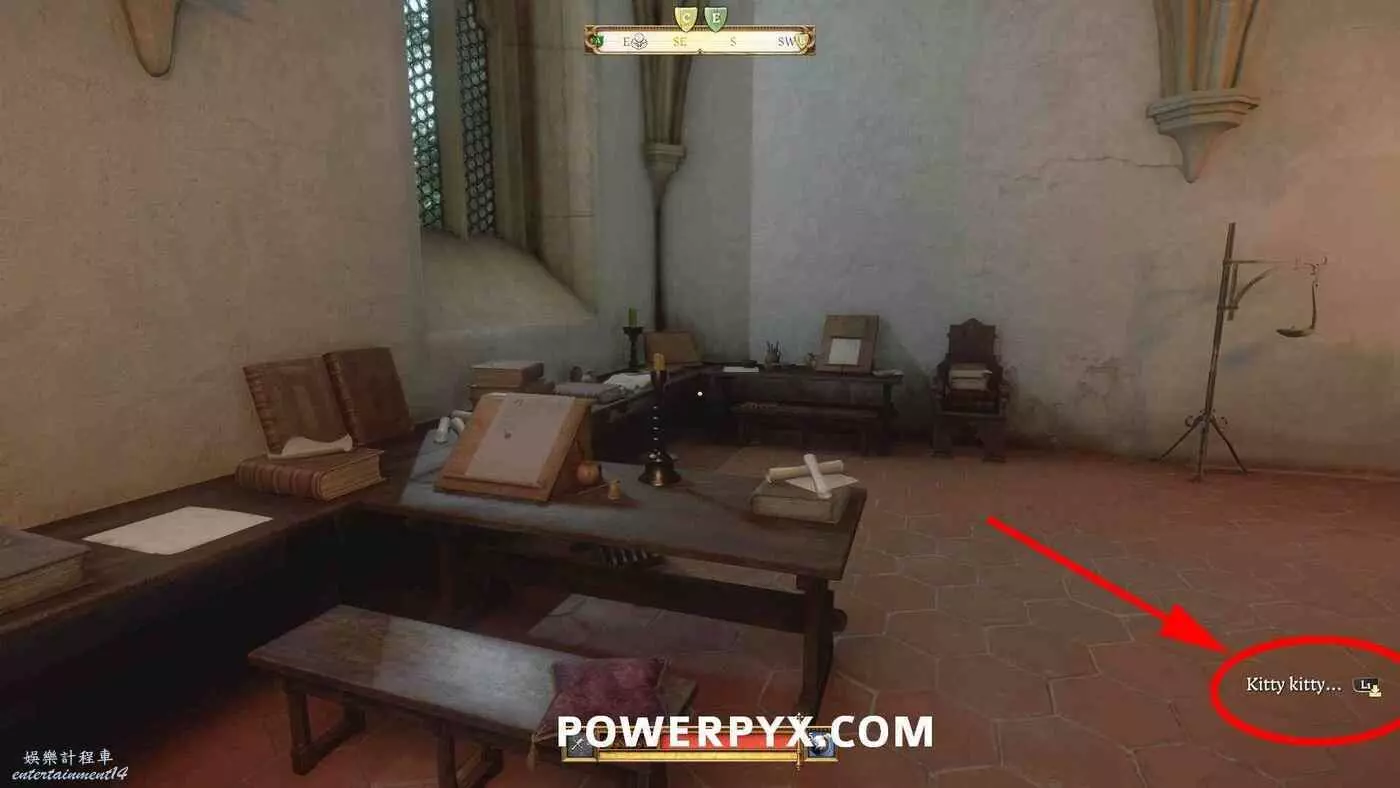 如果此時還沒有解鎖獎盃/成就【貓之眷戀】,可以支付向守衛支付300格羅申重新進入修道院,再次在圖書館角落與貓咪互動。