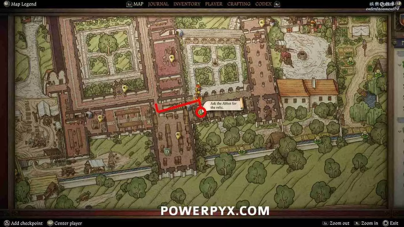 進入修道院東北角的醫務室,就是紅色的像教堂一樣的建築。進入放著病床的房間與阿爾比赫交談。如果之前與佩特羅米爾參觀了修道院,那麼此時阿爾比赫就會在此處等候。