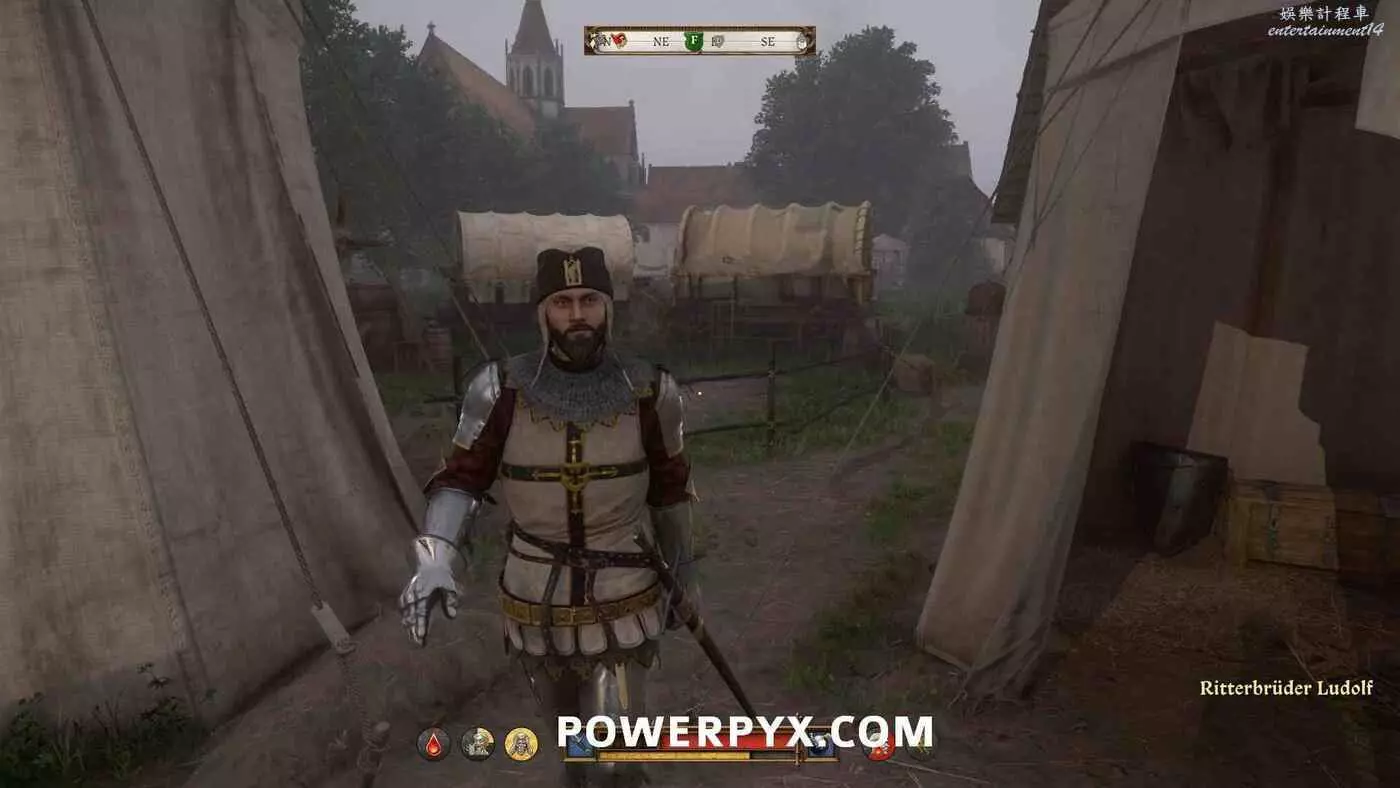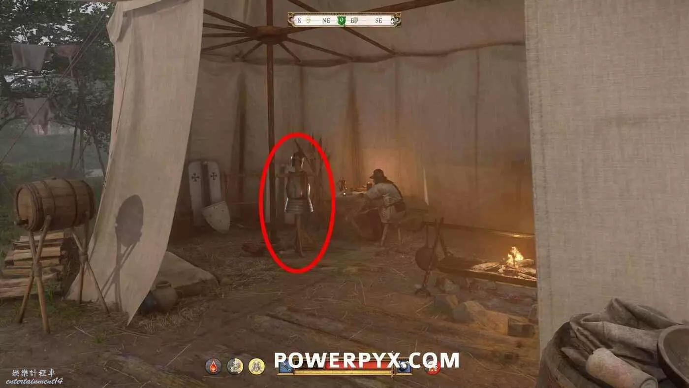 如果完成了前兩個任務目標,那麼魯道夫就會允許亨利從其中一個帳篷裡拿取【貴族胸甲】和【鐘型中頭盔】。這是一套屬性非常好的盔甲,在最後的遭遇戰中很有用,建議拿到就立刻裝備上。