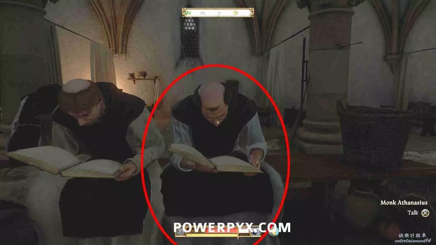 之後跟隨佩特羅米爾參觀修道院,按下【L1/LB/ALT】自動跟隨,走一圈之後他會帶亨利來到阿爾比赫等候的醫務室,在參觀過程中可以隨意提問,選擇任意選項。