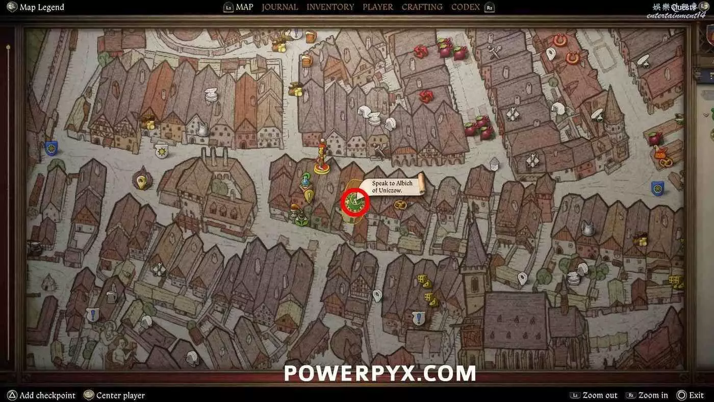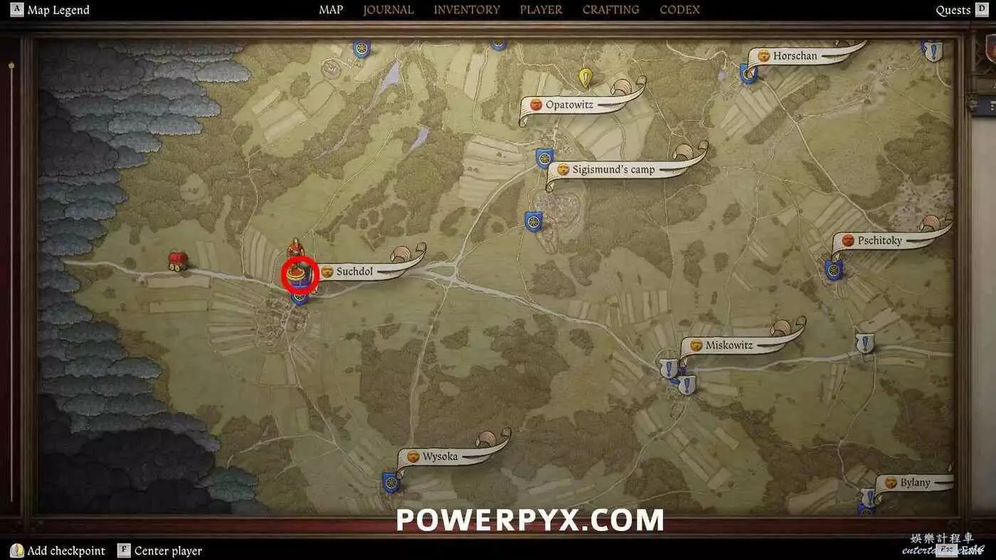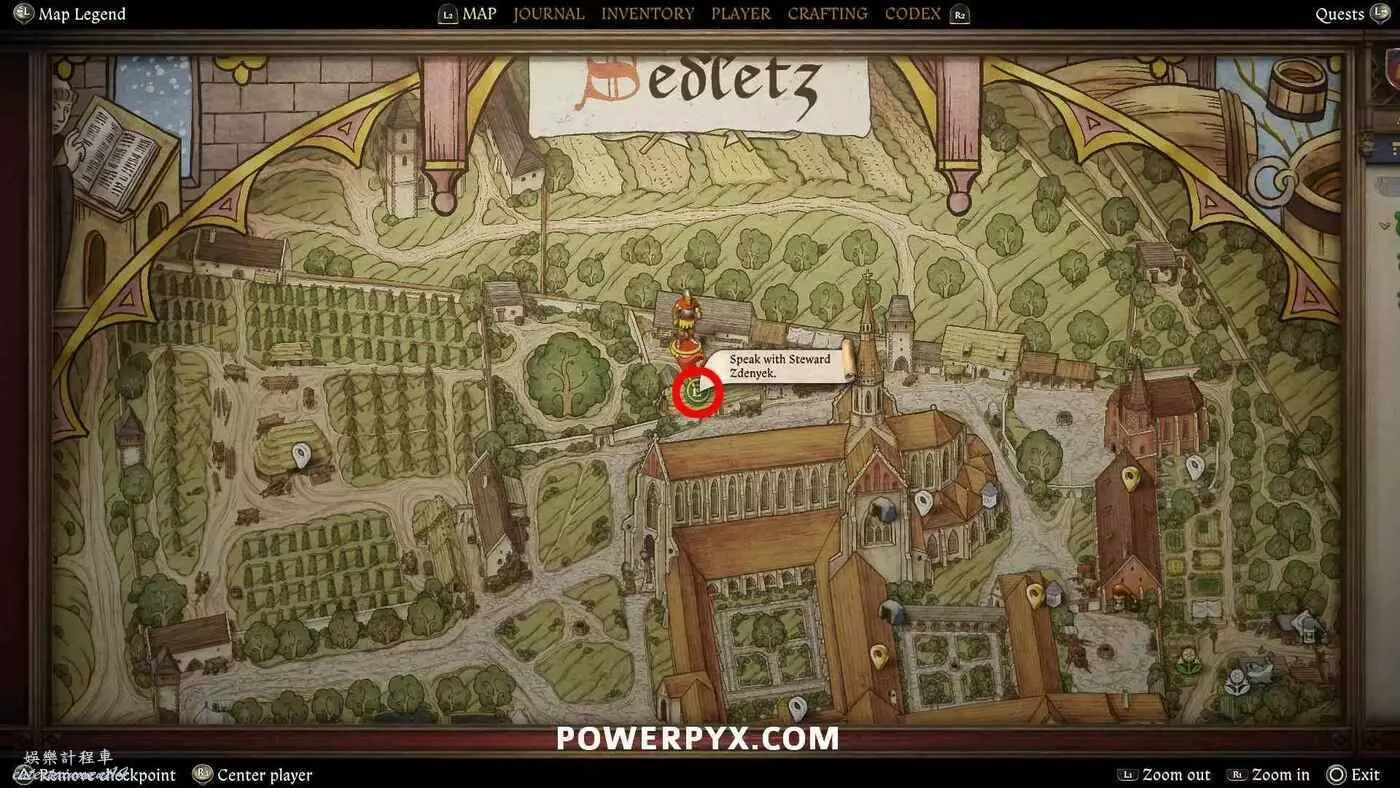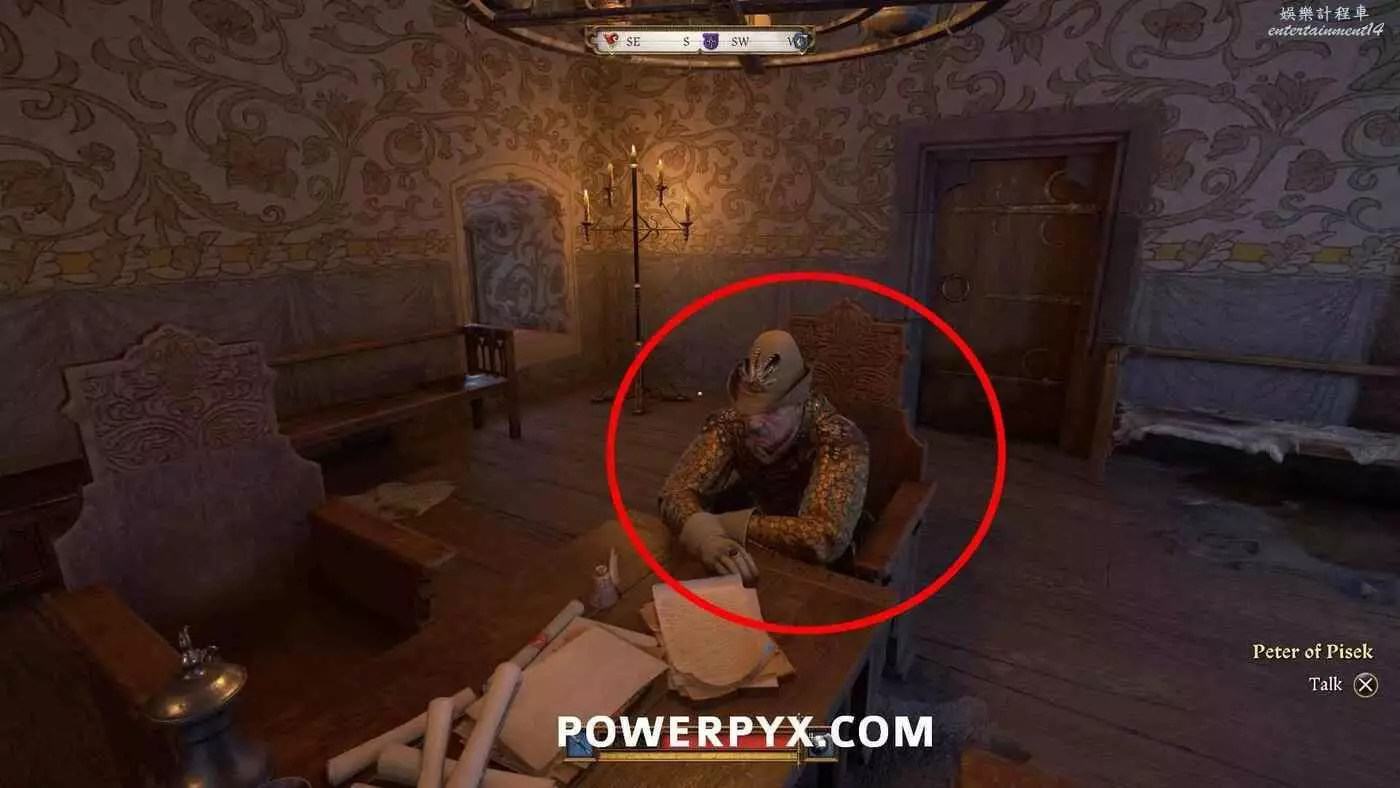 如果已經通關了本體主線,可以在庫滕堡找到皮塞克的彼得,他也可能往返於蘇赫多爾和庫滕堡之間的道路上,但其位置始終會以紫色圖示標記顯示。