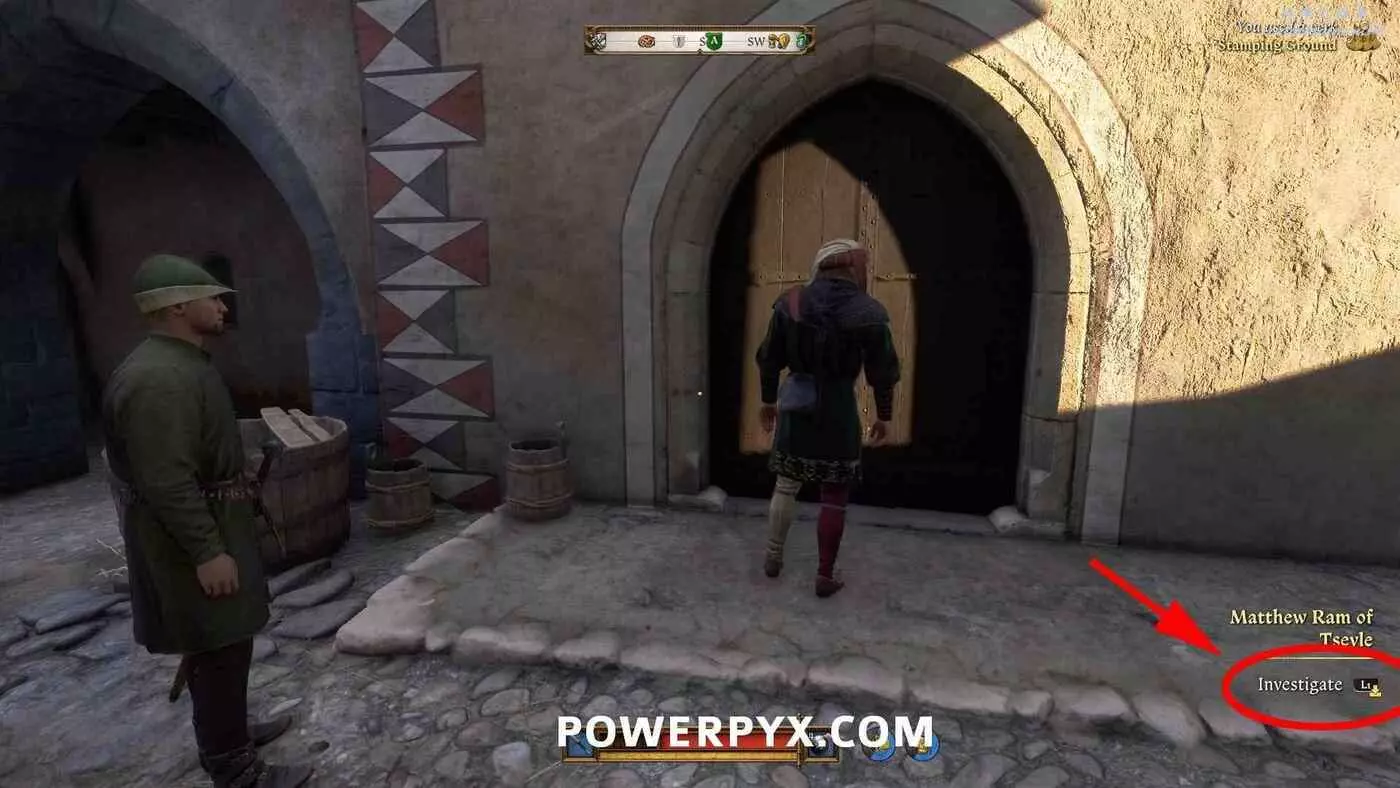 到達目標房子前,發現采伊萊的“公羊”馬修和他的保鏢在敲門。靠近他們右下角會彈出【調查】提示。按下【L1/LB】調查。