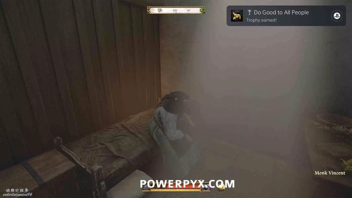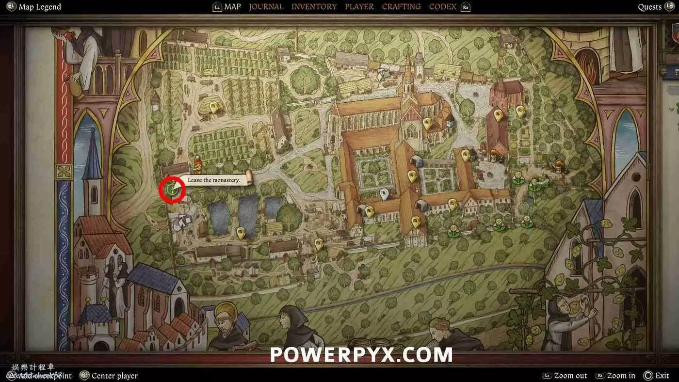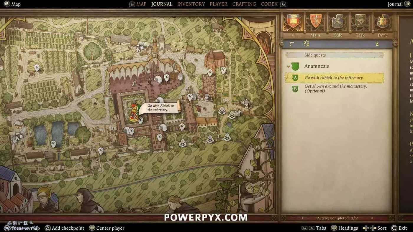 之後跟隨佩特羅米爾參觀修道院,按下【L1/LB/ALT】自動跟隨,走一圈之後他會帶亨利來到阿爾比赫等候的醫務室,在參觀過程中可以隨意提問,選擇任意選項。
