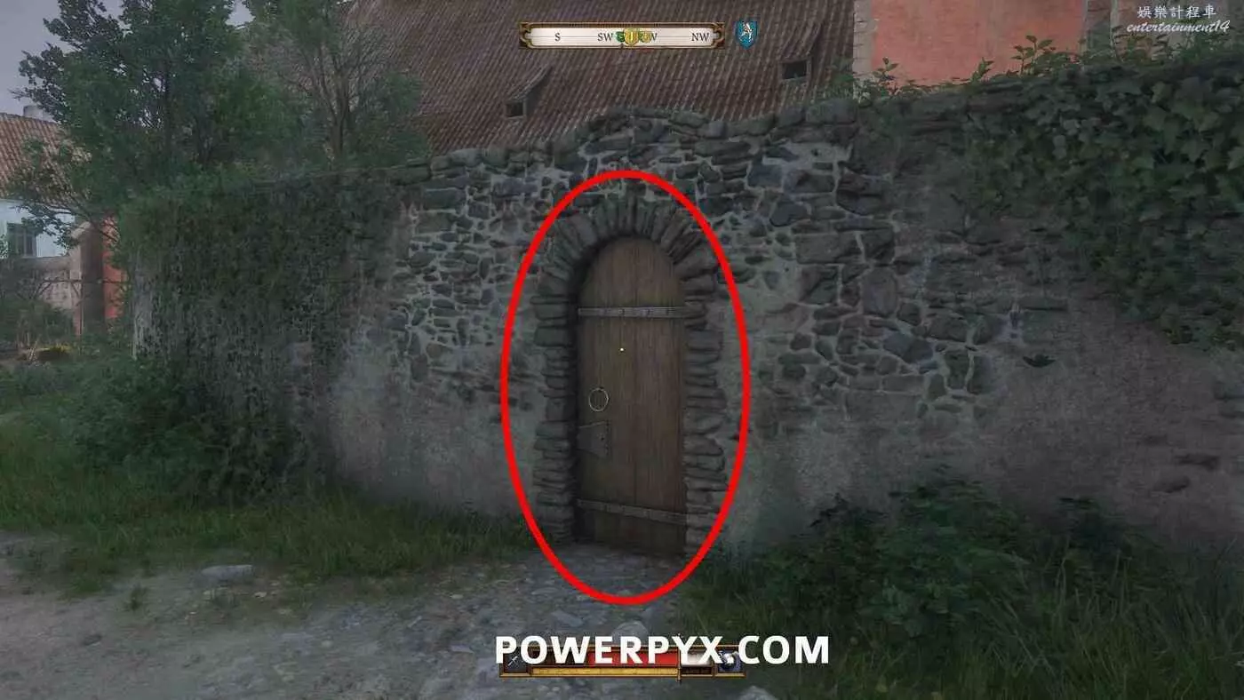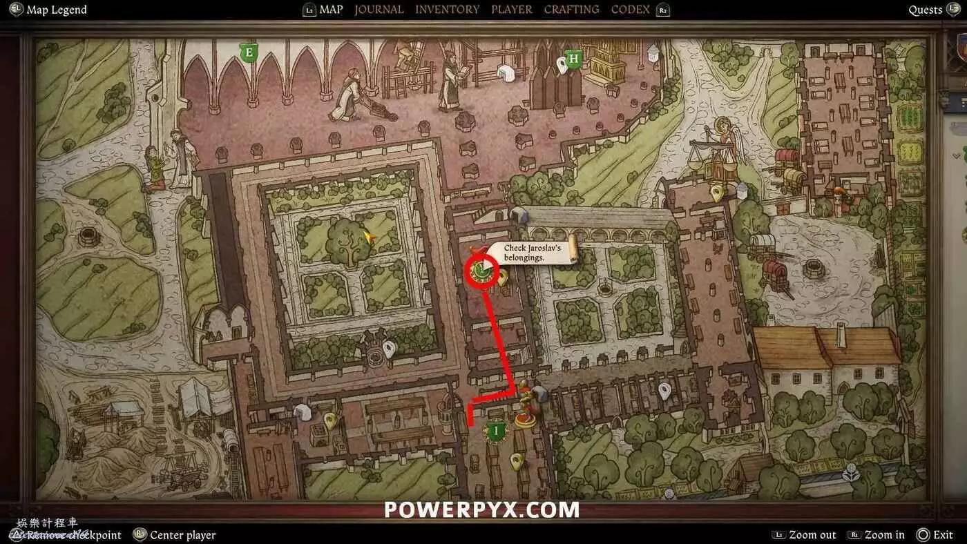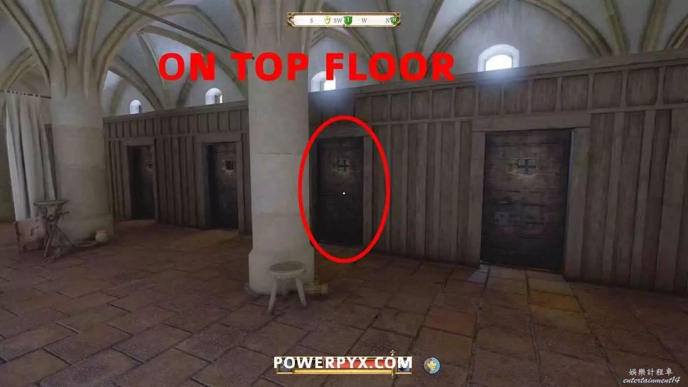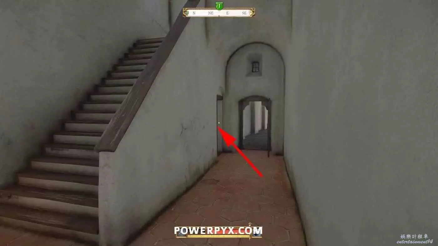 如果從斯蒂芬那裡拿到了房間鑰匙,地圖上就會顯示房間的位置標記,可以中間庭院進入,位於庭院的東南角。