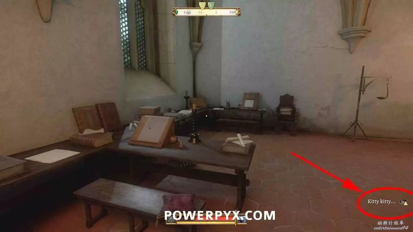 如果此時還沒有解鎖獎盃/成就【貓之眷戀】,可以支付向守衛支付300格羅申重新進入修道院,再次在圖書館角落與貓咪互動。