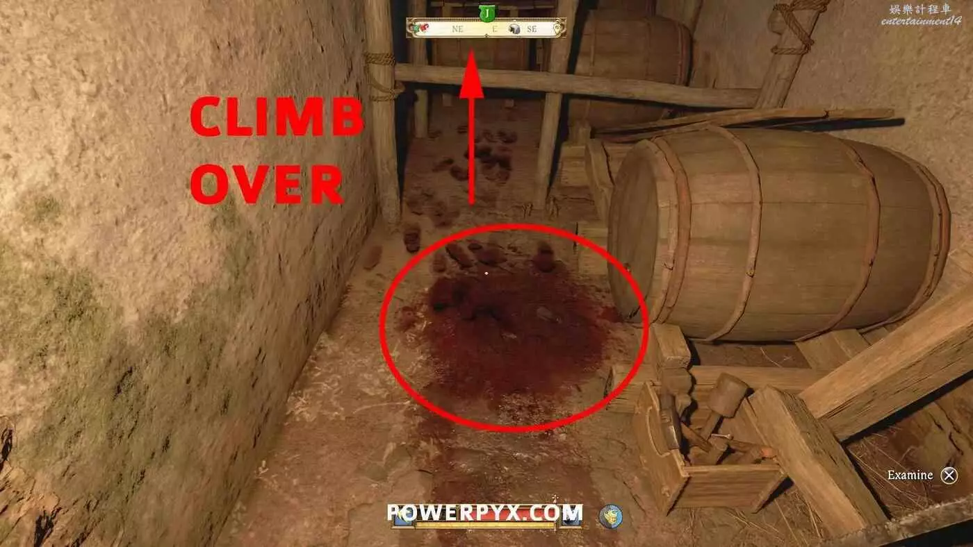 跳入教堂地上的洞,跑過側面的隧道(墓穴右側)。然後穿過地窖,這裡只有一條通路,其他路都被堵住了。在地窖途中會觸發另一場戰鬥。走出地窖後,會觸發一段過場動畫,亨利與撒伽利亞對峙。
