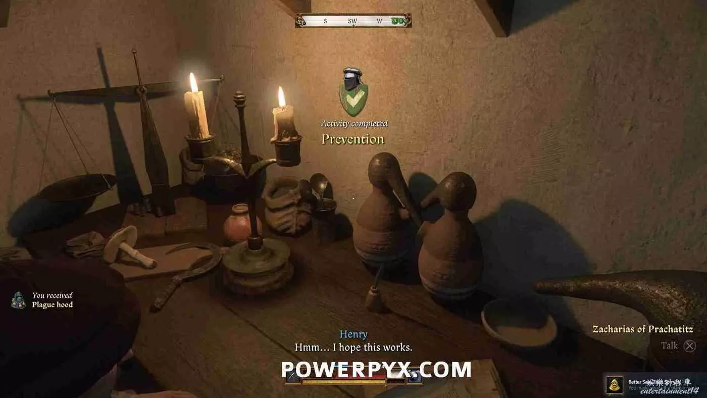 此任務在完成【御醫】後自動開始。按照《天國拯救》的典型風格,院長只有在我們跑腿之後才能對話。因此需要調查清楚修道院裡究竟傳播了什麼疾病。此時會有兩個任務目標,建議先完成可選目標【參觀修道院】,以免有所遺漏(先一起去醫務室看完對話後再回來也可以繼續參觀修道院,如果怕錯過可以提前存檔)。