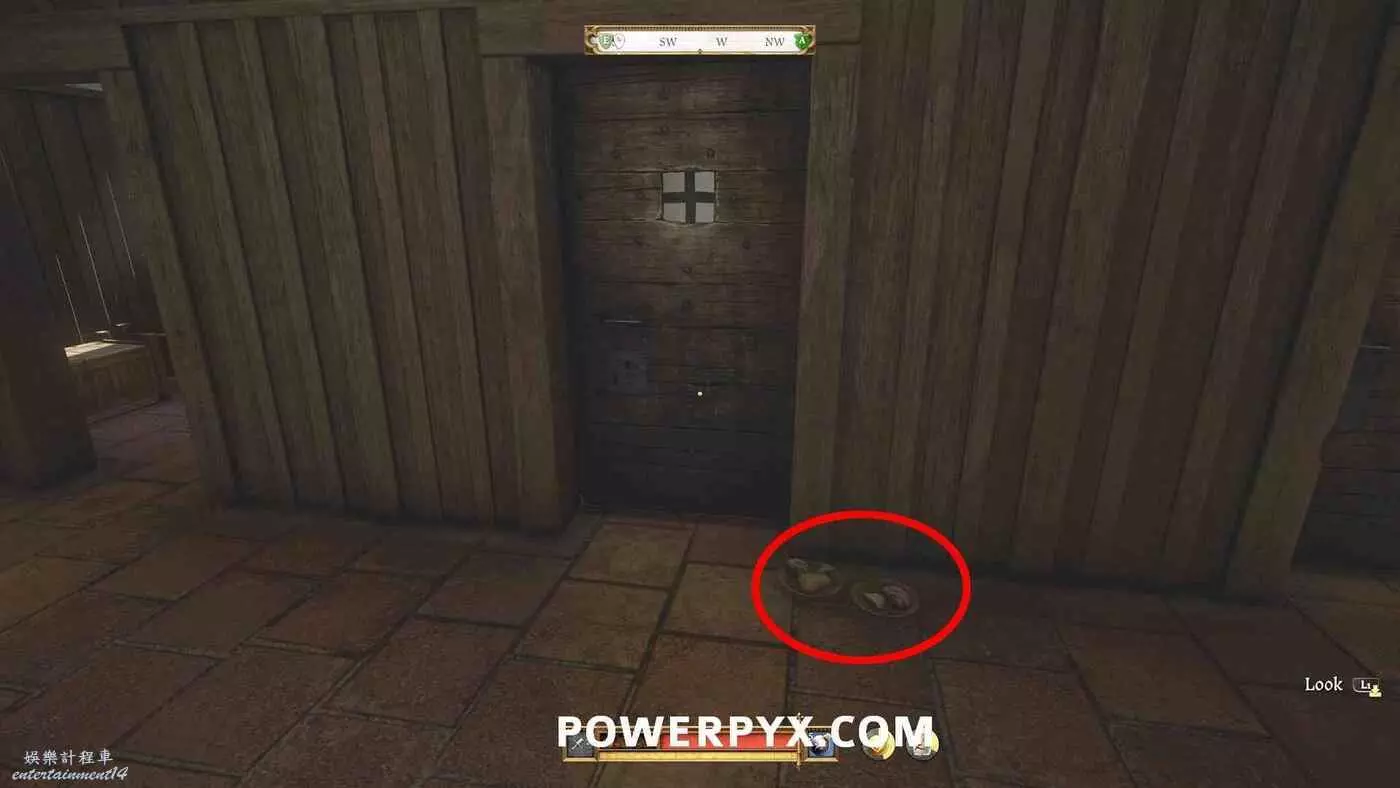 前往修道院西邊建築位置的目標A點。需要進入穀倉,但門上帶有困難難度的鎖。穀倉前有一名守衛。先存檔,然後從守衛身上偷到鑰匙,用鑰匙開門。如果被抓住就讀檔再試。裡面有兩具屍體。