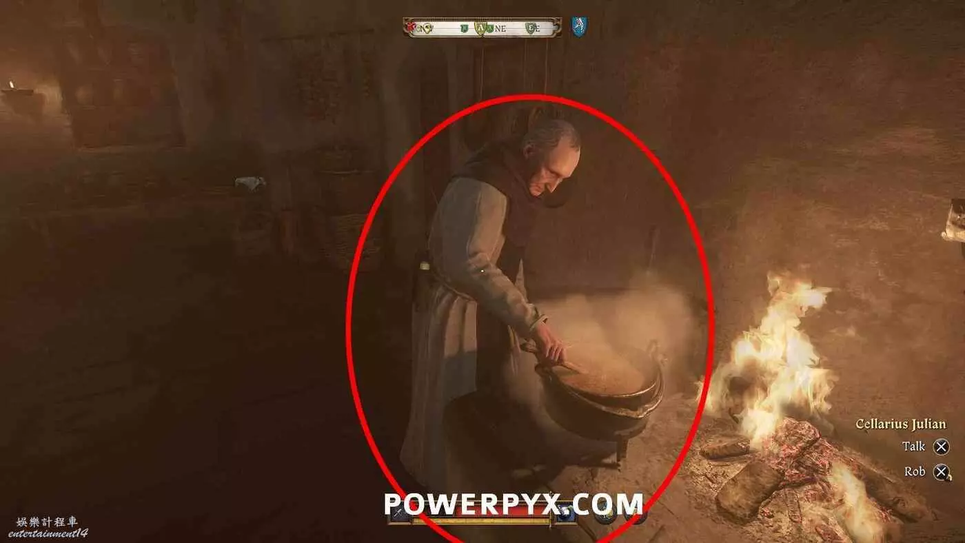 濃湯可以通過與儲藏室修士交談來並通過技能檢定獲得,不過也可以直接去廚房偷。