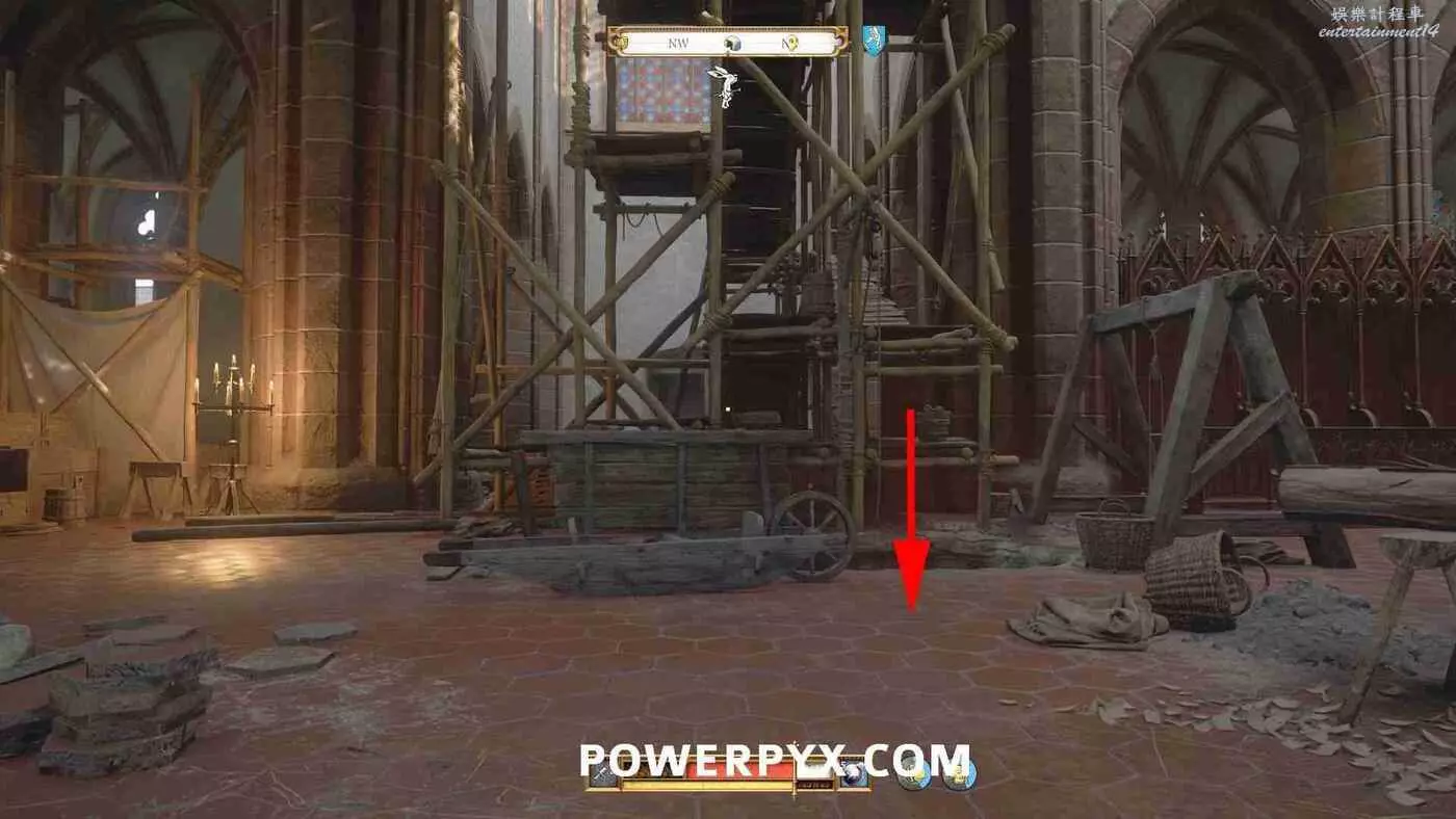 做好所有準備後,前往教堂內地上的洞,並使用按下介面右下角的提示按鍵,觸發過場動畫。