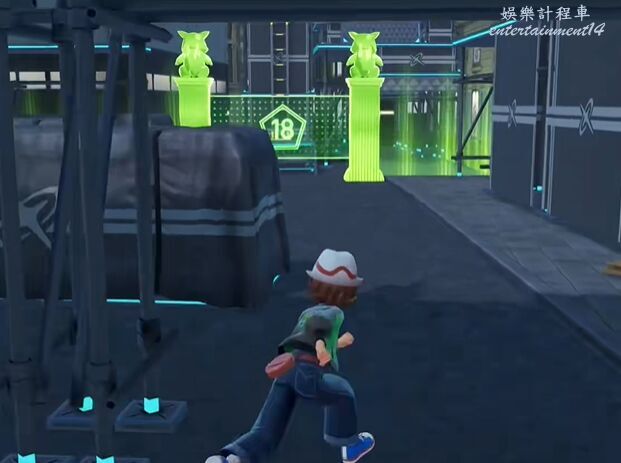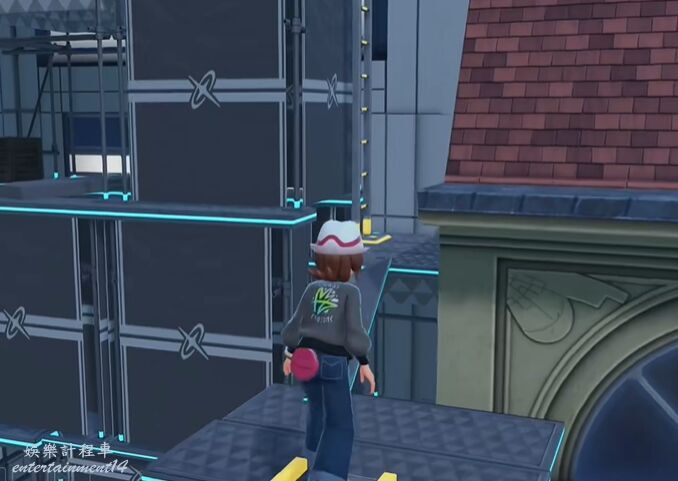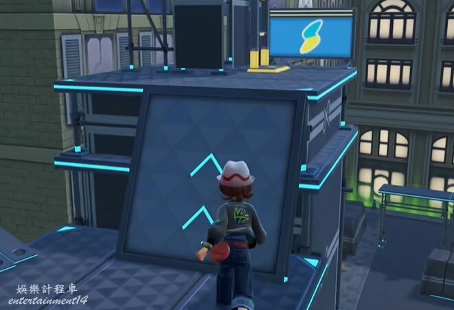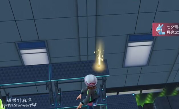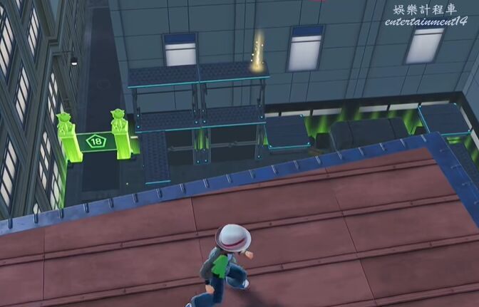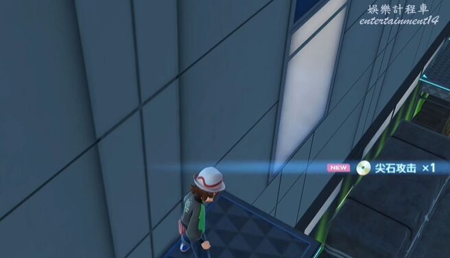 5、上去後在平台邊緣調整身位,然後使用滑翔落到閃金光的平台上。將寶可夢球撿起獲得尖石攻擊招式學習器。