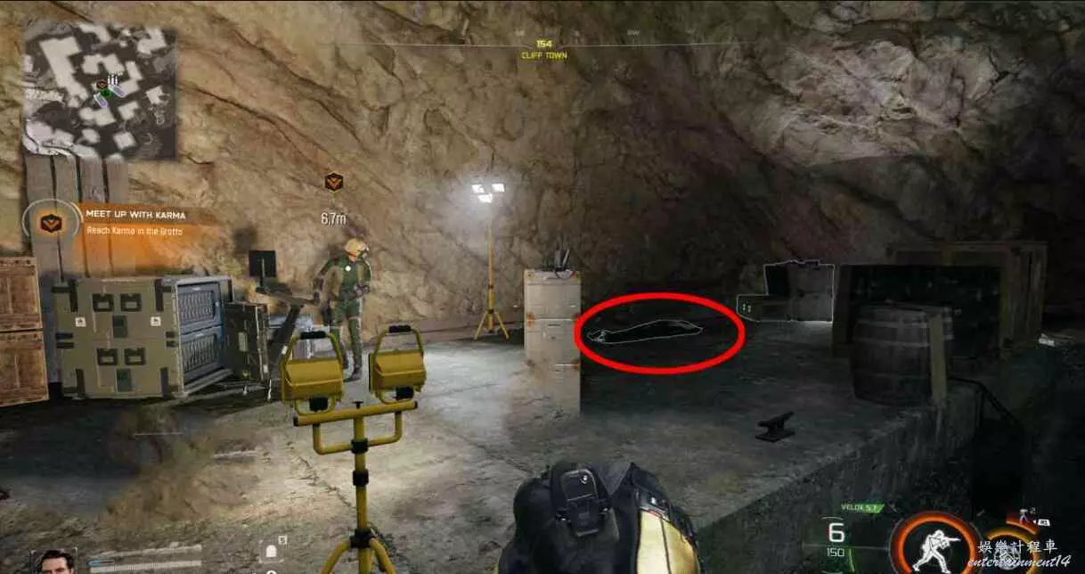 繩降至水下洞穴與卡瑪匯合後,轉身即可在卡瑪(主目標標記角色)右側發現該情報。具體位置為地面上的屍體袋,互動拾取。