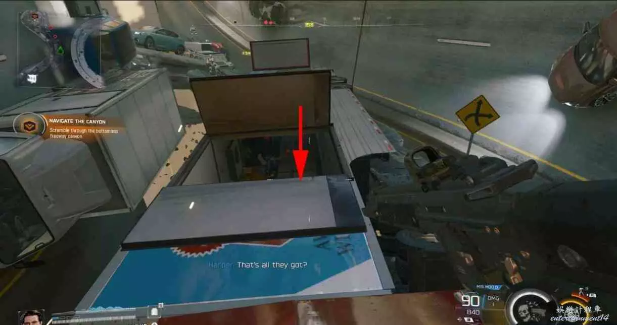任務初期穿過傳送門後,在一段高速公路區域戰鬥。推進至第一個彈藥補給箱處,此後道路開始扭曲變形。繼續前進至出現帶有“Find Yourself”電子廣告牌的紅色貨車處。跳入貨車貨櫃,轉身即可在角落的箱子上找到情報(一枚放置在小盒中的徽章)。