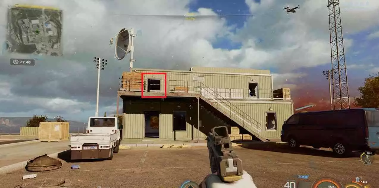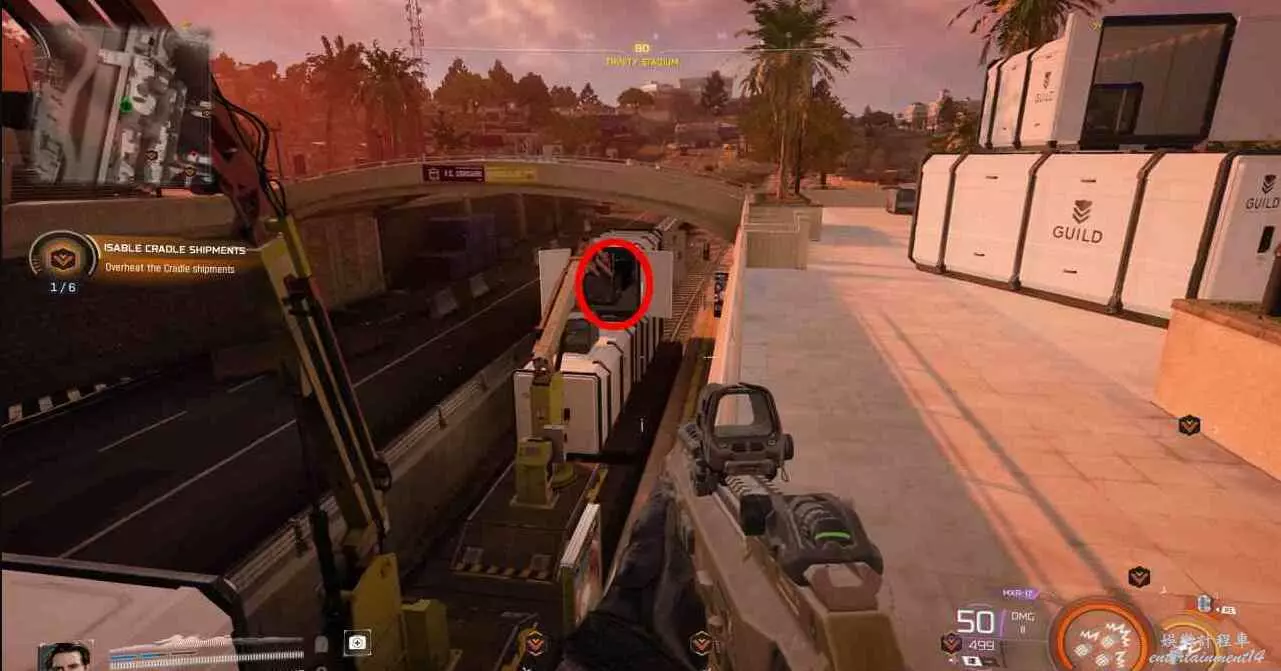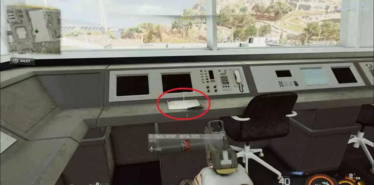 在安全屋完成裝備補給後,向目標點前進,抵達靠近水域、遍佈搖籃貨箱並有敵人巡邏的區域。從搖籃貨箱(主目標)位置向北移動,跳至下方道路,隨後進入橋旁的白色集裝箱二層,情報位於幾個深色箱子之間的地面上。