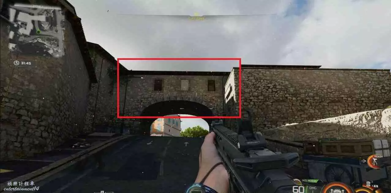 隨後轉身面向集裝箱,再次使用抓鉤攀至其下方壁架,此處有第二份連殺獎勵。情報為插在牆上的匕首所懸掛的狗牌。此位置位於本任務最終Boss戰觸發點之前(開啟集裝箱即啟動Boss戰)。