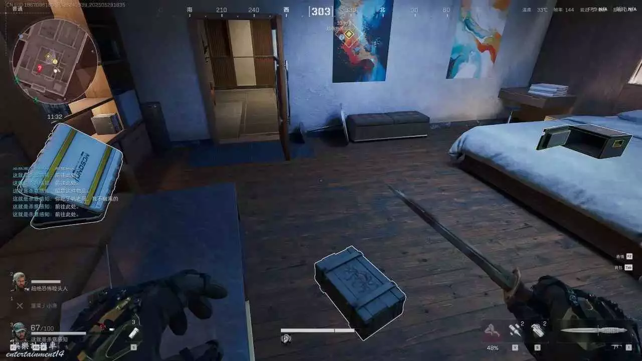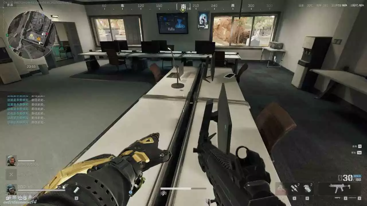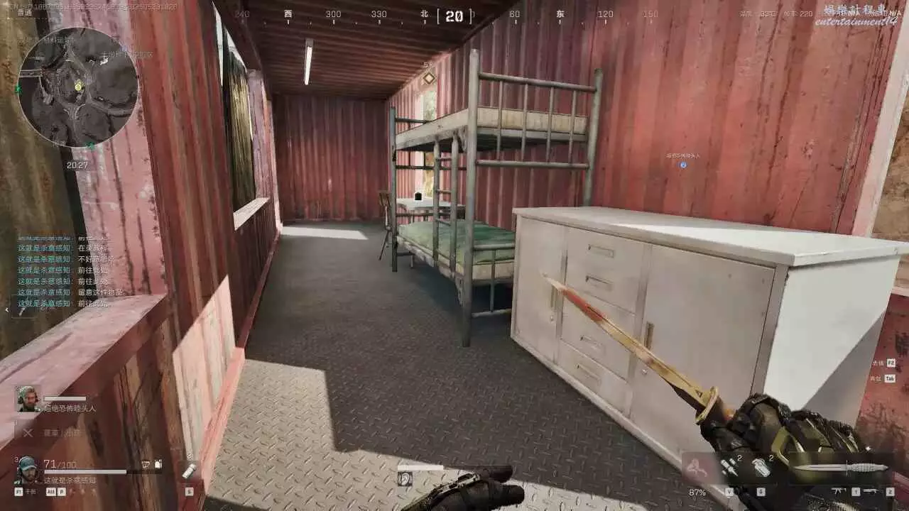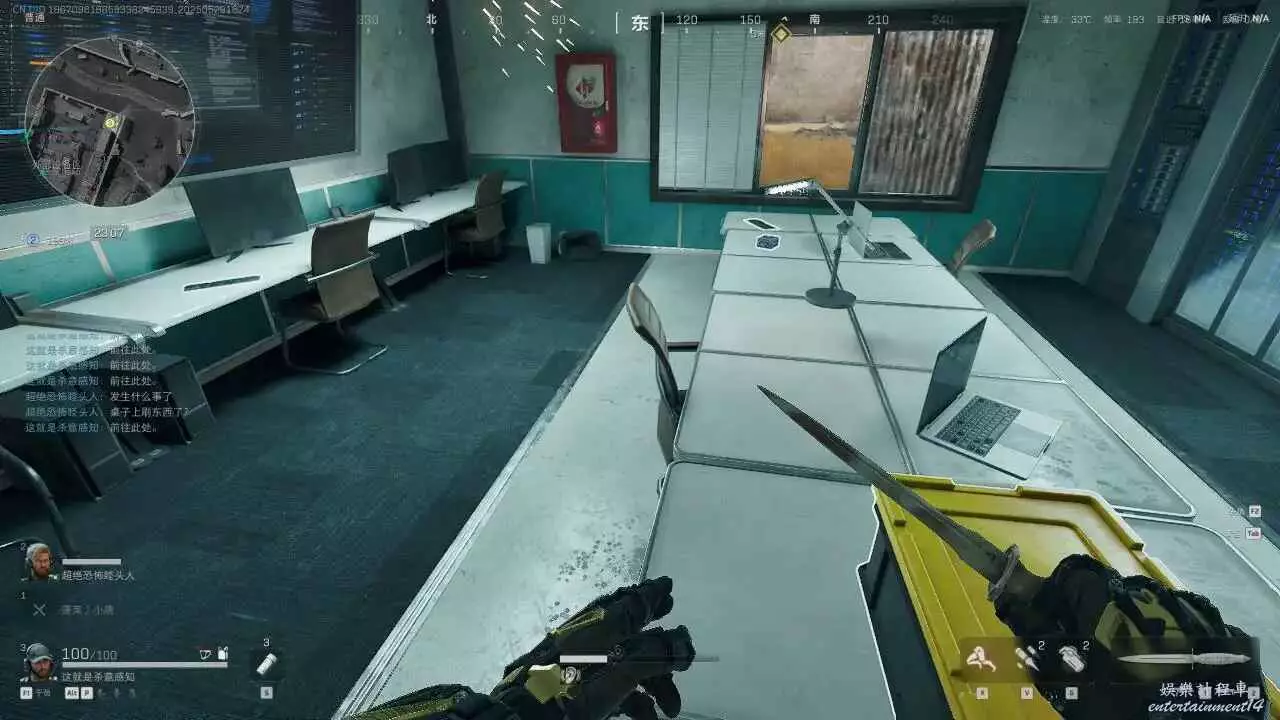 軍營1樓右手的電腦桌機左邊和後面的兩個貨架都要看,都會刷紅。