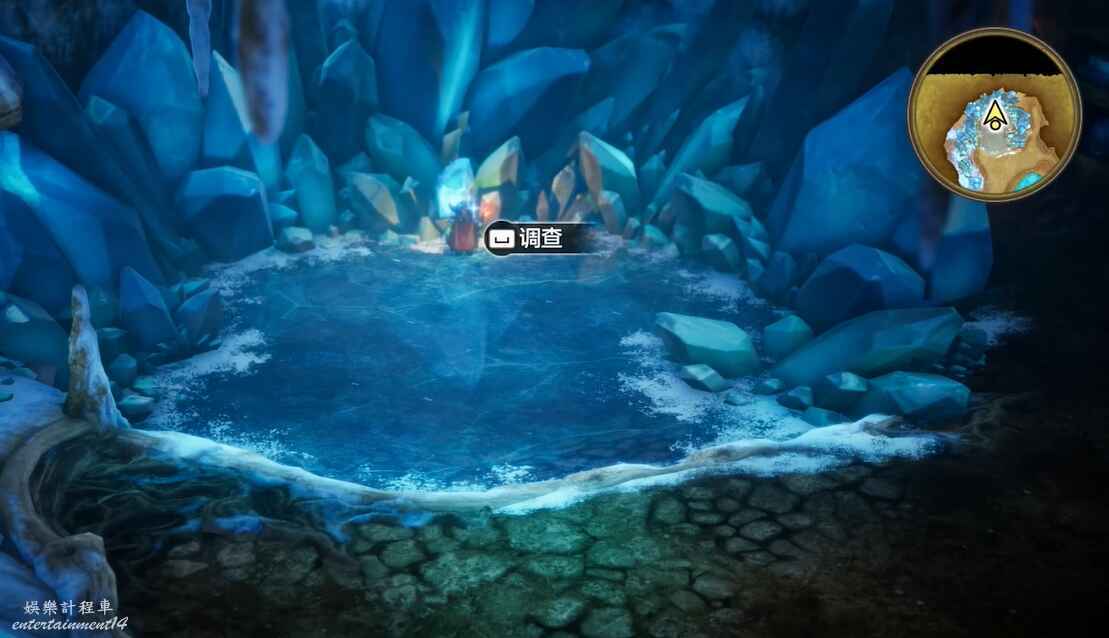 離開房間,檢查附近的井,可以下到下一層,繼續前進直到找到一個亮閃閃的巨大水晶。