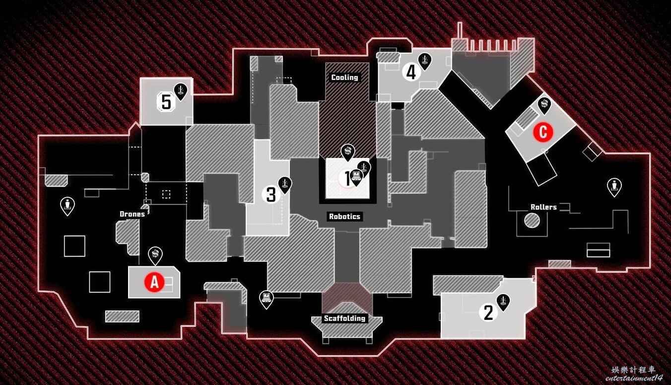 決勝時刻 黑色行動 7 雪山前哨地圖點位一覽 18 11 月 2025-11-18 廣告 來源:互聯網 發佈地圖:6對6、中型 阿拉斯加偏遠懸崖上,有一座凍結的機器人製造基地。 這裡運用工業級3D列印技術,為公會生產無人機與戰鬥坦克,玩家的戰鬥場景豐富多樣。 既可以在圍繞核心設施延伸的內部走廊裡激烈交戰,也能在佈滿冰雪的懸崖邊緣展開遠端火力對抗。 要是想上升到高處,只需啟動傾斜升降裝置的控制台,就能沿著被白雪覆蓋的外部軌道抵達。