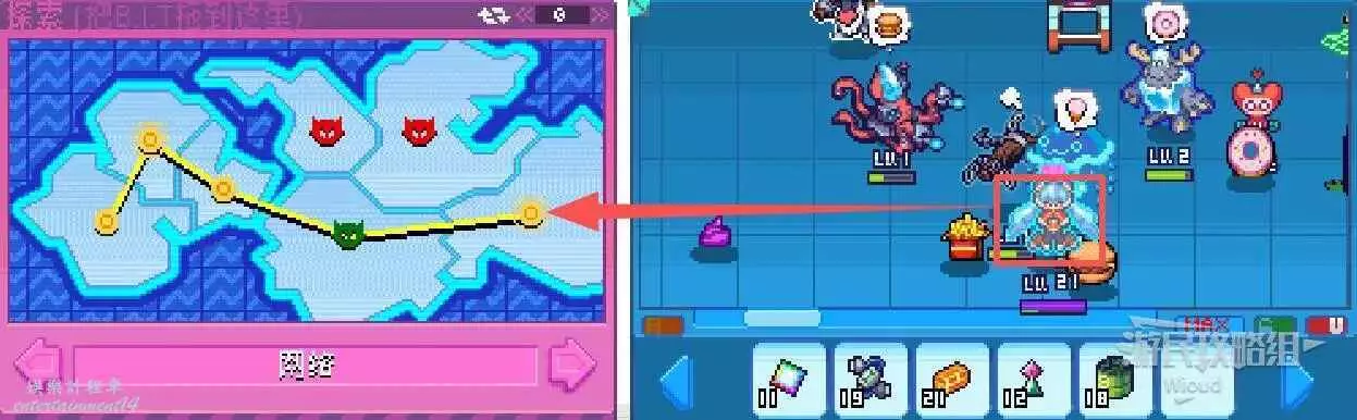 想要進入戰鬥,您需要拖動在家園互動的BIT到左側關卡地圖,想要進入哪個關卡就拖動到哪個關卡。