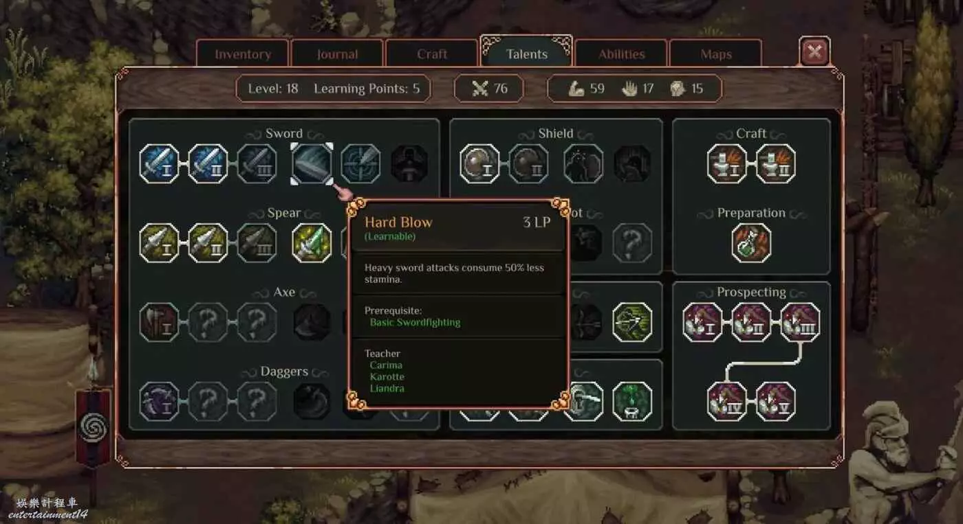 胡洛蔔:奈米頓工匠部——基礎劍術,訓練劍術,硬擊