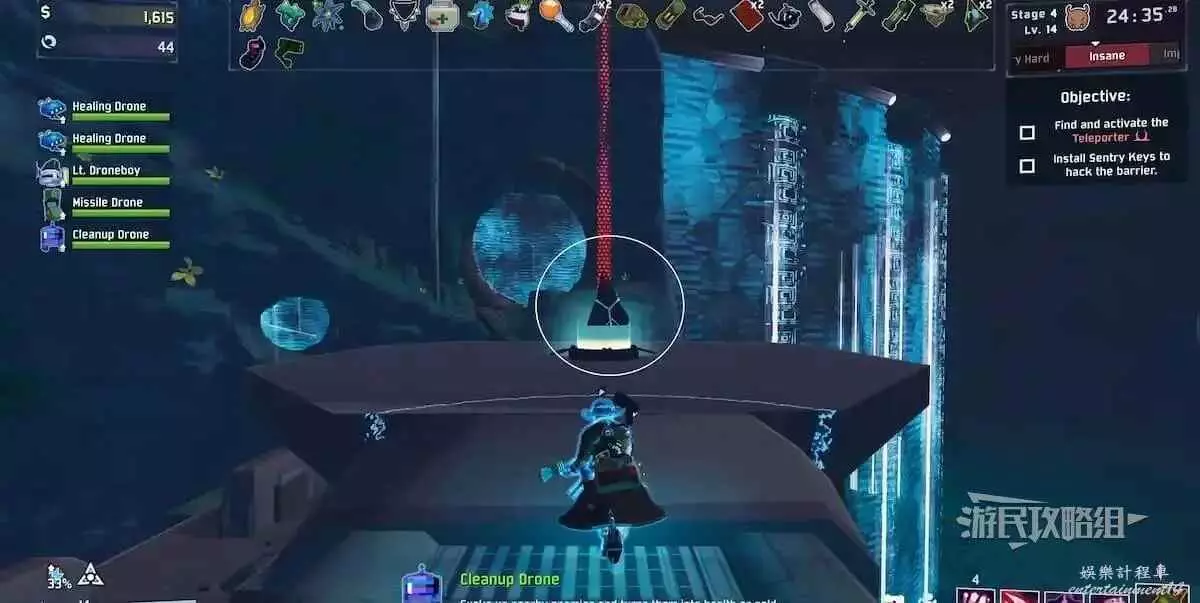 啟動後,在本關的傳送器處就能看到一個藍色的光球在繞圈(與之前本體進入隱藏地圖的效果一樣)。