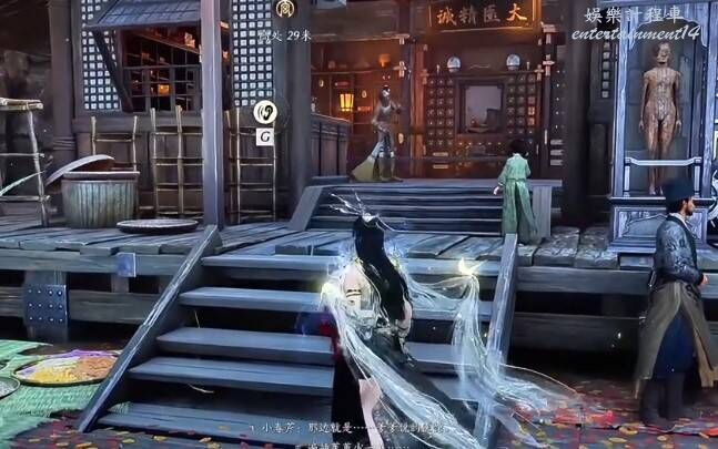 5. 獲取密信:傳送至「易墨坊界碑」,通過繩索攀爬至最高處房頂,找到有木人偶的店鋪,偷聽NPC成歡的對話後,使用奇術從其身上獲取密信