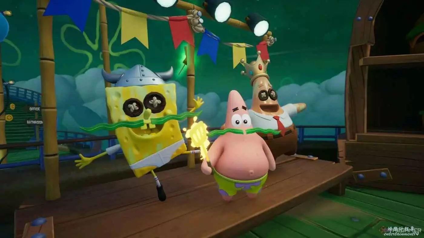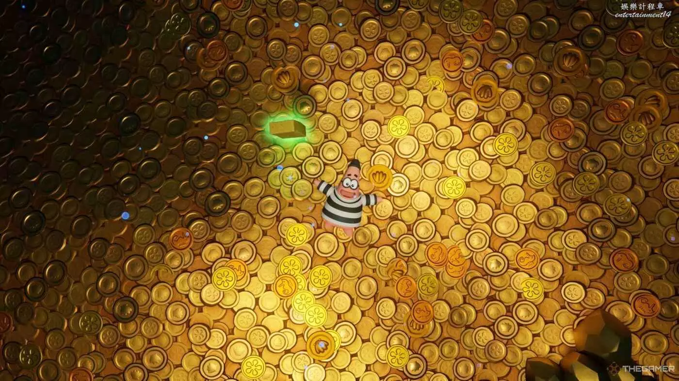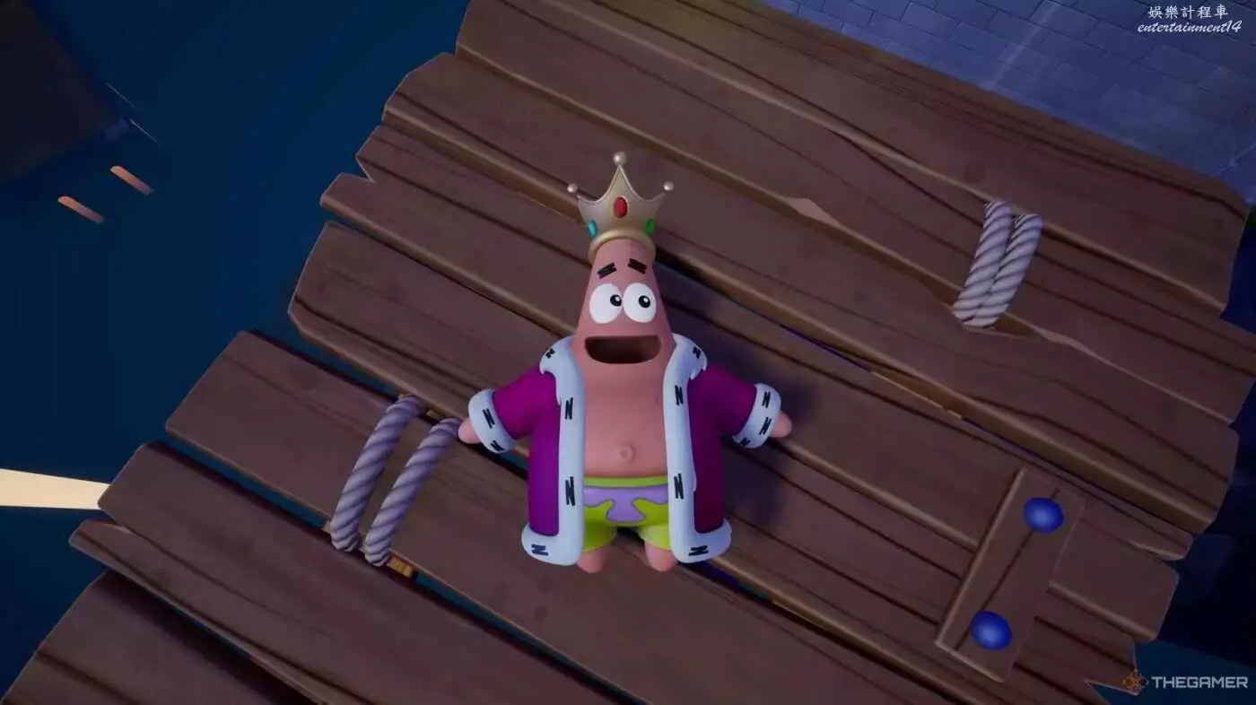 《潮汐巨神》並沒有給你太多解鎖派大星國王服裝的指導,這讓遊戲過程有些麻煩。要獲得它,你需要用海綿寶寶的空手道踢擊擊中遊戲中每一顆金氣球。這些服裝數量不多,你大幾率通過自然遊戲獲得大部分,但只要重玩關卡,留意金色氣球,就能以1250金幣購買這套服裝。