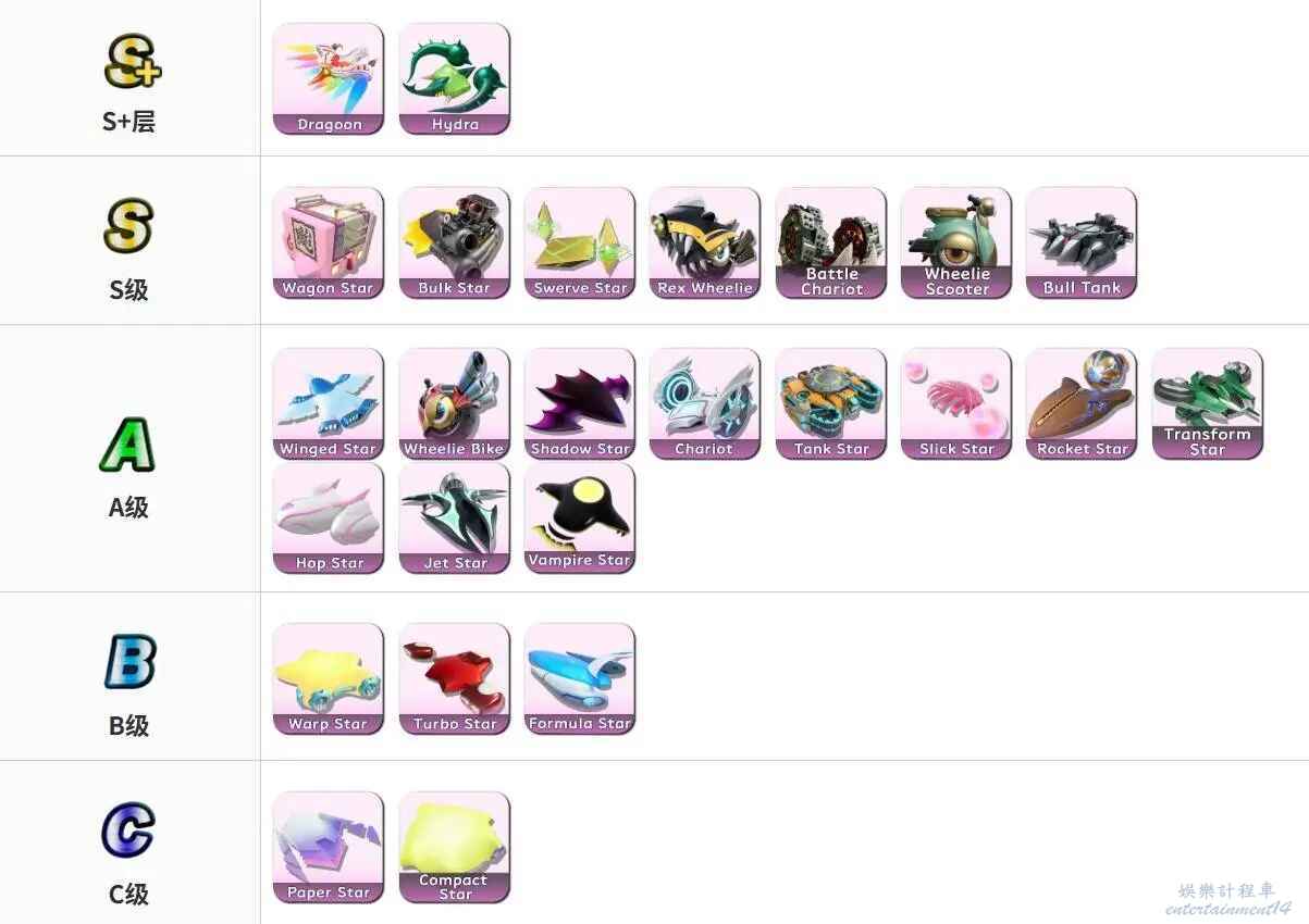 S等級:貨車星、重裝星、飄移星、霸王龍、翹輪戰車、翹輪滑板、公牛坦克