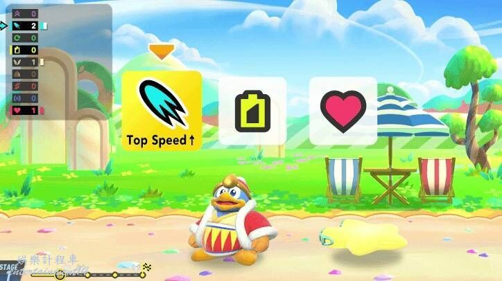 例如,像帝帝帝大王這樣的重型角色,其最高速度、最大生命值和攻擊力屬性會有加成,但其他屬性如升力、轉彎和抓地力則不會獲得增益。選擇專注於這些屬性的挑戰事件可以彌補帝帝帝大王的短板,使其能力更加全面!