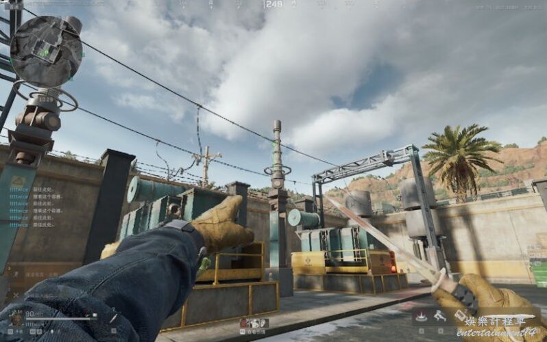 這個點位可以同時看小變的三個出口,運氣好還可以蹲到免費的開卡師傅,我們爬上上面的主機殼,然後對著電線杆直接一個大跳就行,不要背背包,這樣就可以和電線杆融為一體了。