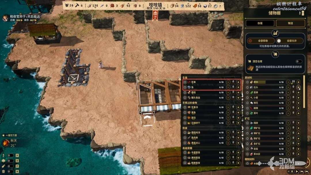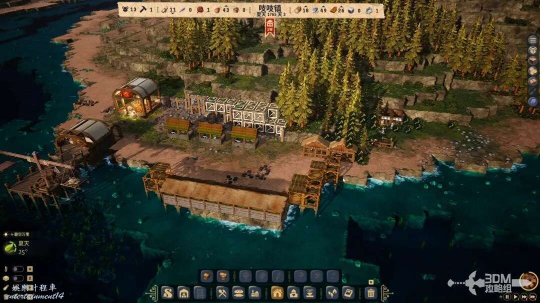 第一個冬天之前,能解鎖的食物就只有漿果,生魚;解鎖薰制坊後還能製作出熏魚,食物不夠就建造兩個釣魚碼頭。