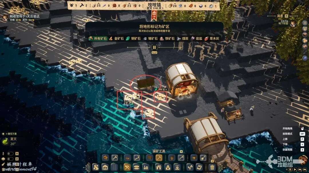 將鼠鼠安排好之後,把資源採集設施移動到資源點附近,使用對應的工具標記需要開採的資源,鼠鼠就會自動工作了。