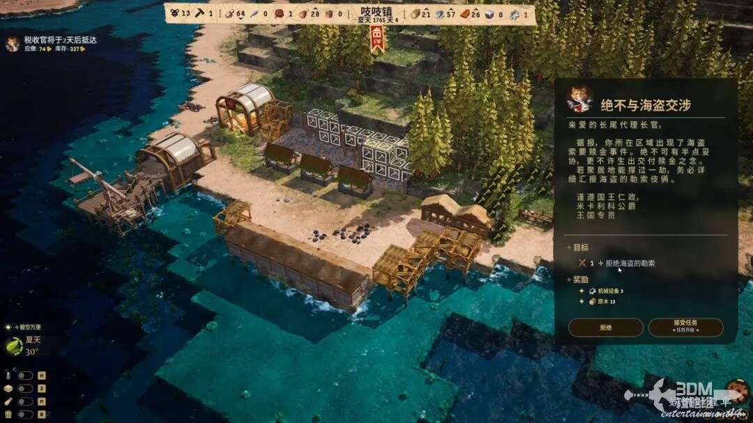 任務絕不與海盜交涉,有時候海盜會登島,索要贖金,點擊拒絕勒索會受到海盜的供給。