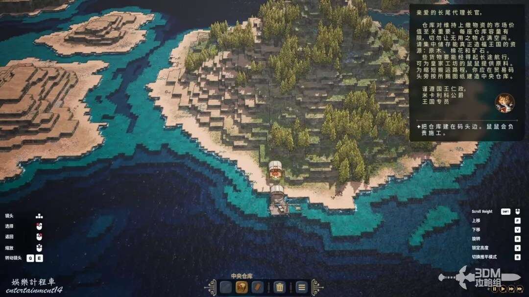 修建好碼頭,將船上的鼠鼠放下船,再修建中央倉庫,中央倉庫放在城市的中心區域,方便後續的發展。然後等鼠鼠們修建倉庫,點擊右下角圖示可以加速時間。
