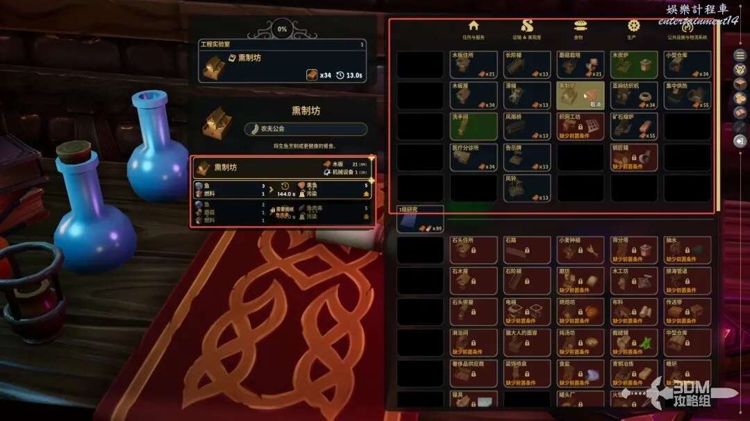 薰制坊藍圖在科研機構裡消耗木材解鎖,建造好薰制爐,製作烤魚還需要燃料。