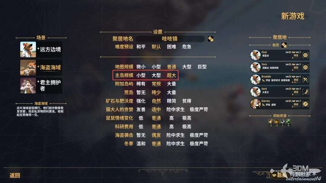 中間的設置基本不怎麼麼需要更改,按照個人喜好調整即可,推薦將主島規模調整的稍大一點。