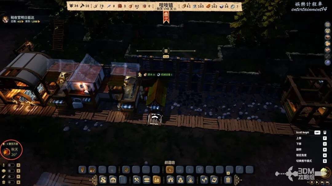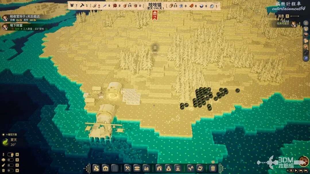 正下方就是建造選項,採集資源、建造工廠設施、修建道路,都是使用下面的操作面板;按下空格可以暫停時間,方便選擇建造位置。