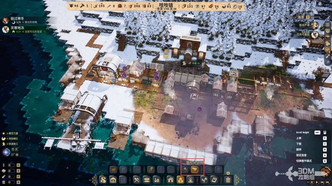 如果沒能及時建造足夠數量的取暖設施,鼠鼠們就會凍傷,建造醫療分診所提供醫療服務(藍圖在科研室裡解鎖)