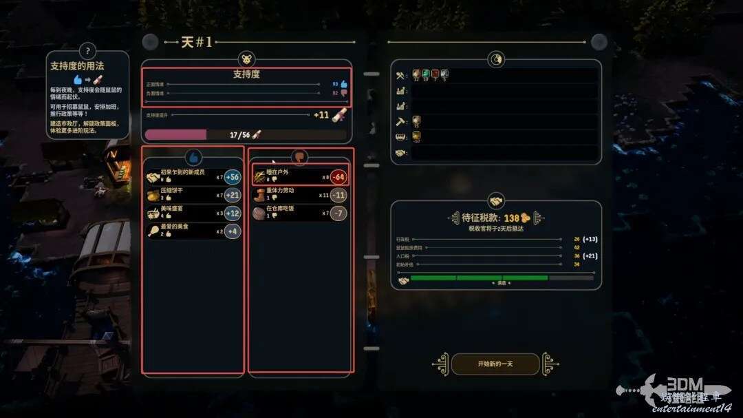 支持點數用於招募鼠鼠,安排加班,後面建造市政廳之後,用支持點數可以解鎖政策玩法。