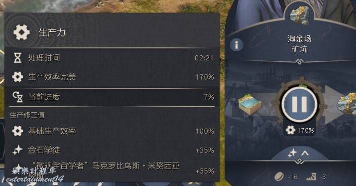 既然卡片採用了標籤來影響建築的方式,所以理論上淘金場其實應該受到2張生產力加成的紫卡影響:一個里拉琴生產鏈紫卡和一個項鍊生產鏈紫卡,分別都提供35%加成,但是實測實際上淘金場怎麼都吃不到里拉琴卡片的加成,只能吃項鍊生產加成卡,不清楚是開發人員遺漏造成的BUG,還是開發人員故意為之讓一個生產鏈的某個建築不能同時吃複合生產鏈加成卡,把每個建築限定成了只吃1張(排除微觀宇宙),如果是僅限定吃一張卡加成
