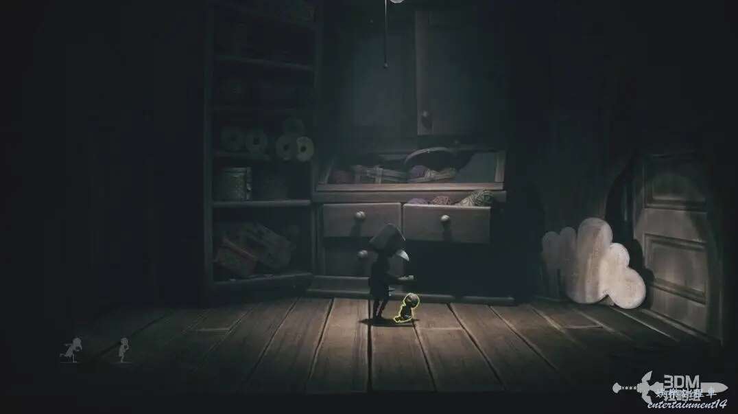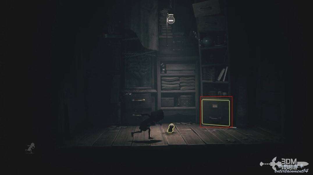 上來後往右邊走,房間內發現一個娃娃(13)。拿到娃娃後拉動右邊的櫃子,會跑出來一個喏姆。