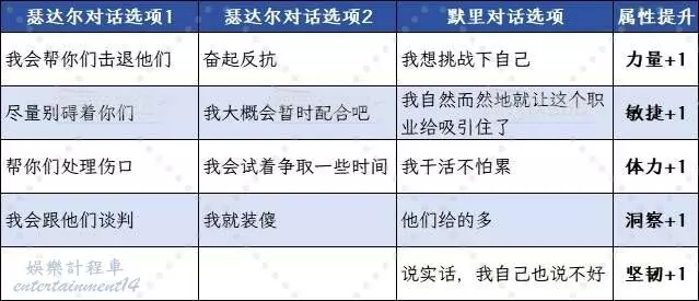 灰雨鋼鋒 序章對話選項提升屬性一覽