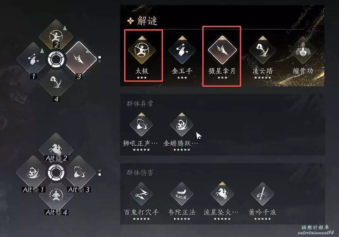 首先跟著任務指引走,一直到遇見小八,他會告訴我們使用太極和石頭處理機關。此時我們需要裝備上【太極】和【攝星拿月】。