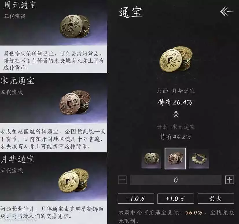 要注意的是,【宋元通寶】要在去開封之後才開放,到達單人模式三級後,也可通過不肝商城兌換有限的數量。