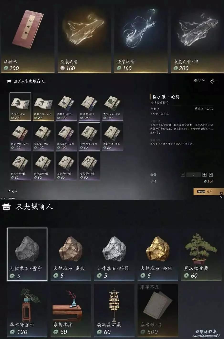 使用方法:可用於遊戲商城中購買道具;商城·金聲長鳴中抽取外觀;在未央城商人處兌換心法、外觀等物資;建立百業等等玩法。